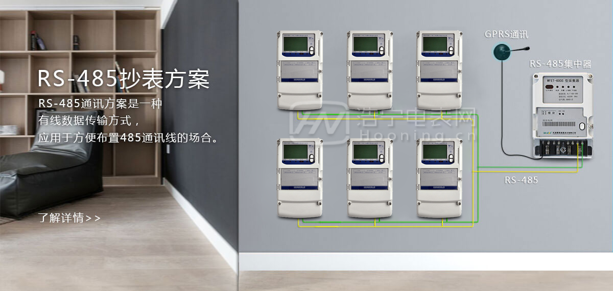 RS485通訊口抄表,配合抄表系統(tǒng),可抄讀電表的各項電量數(shù)據(jù)。并支持DL/T645-1997和DL/T645-2007多功能電能表通訊規(guī)約。
